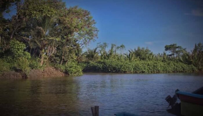 Sungai ini menjadi satu-satunya jalur keluar-masuk bagi warga Dusun Bondan. Diapit rawa dan air pasang yang kerap datang tiba-tiba, perjalanan menuju dusun bukan hal mudah (Ningrum Habibah)