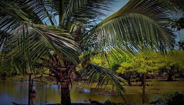 Di antara pepohonan kelapa dan genangan air payau, warga Dusun Bondan menggantungkan harapan pada kolam ikan, salah satu sumber penghidupan warga Dusun Bondan (Ningrum Habibah)