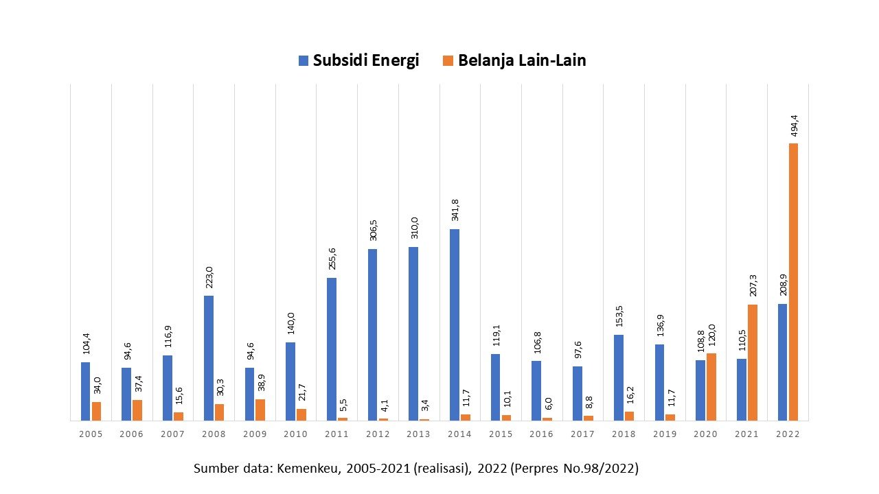 Sebagaimana disebut di atas, Perpres No.98/2022 mengalokasikan subsidi energi sebesar Rp208,9 Trilyun. Wajar jika banyak pihak yang mempertanyakan pernyataan subsidi energi, bahkan sempat disebut subsidi BBM saja, yang mencapai lebih dari Rp500 Trilyun.